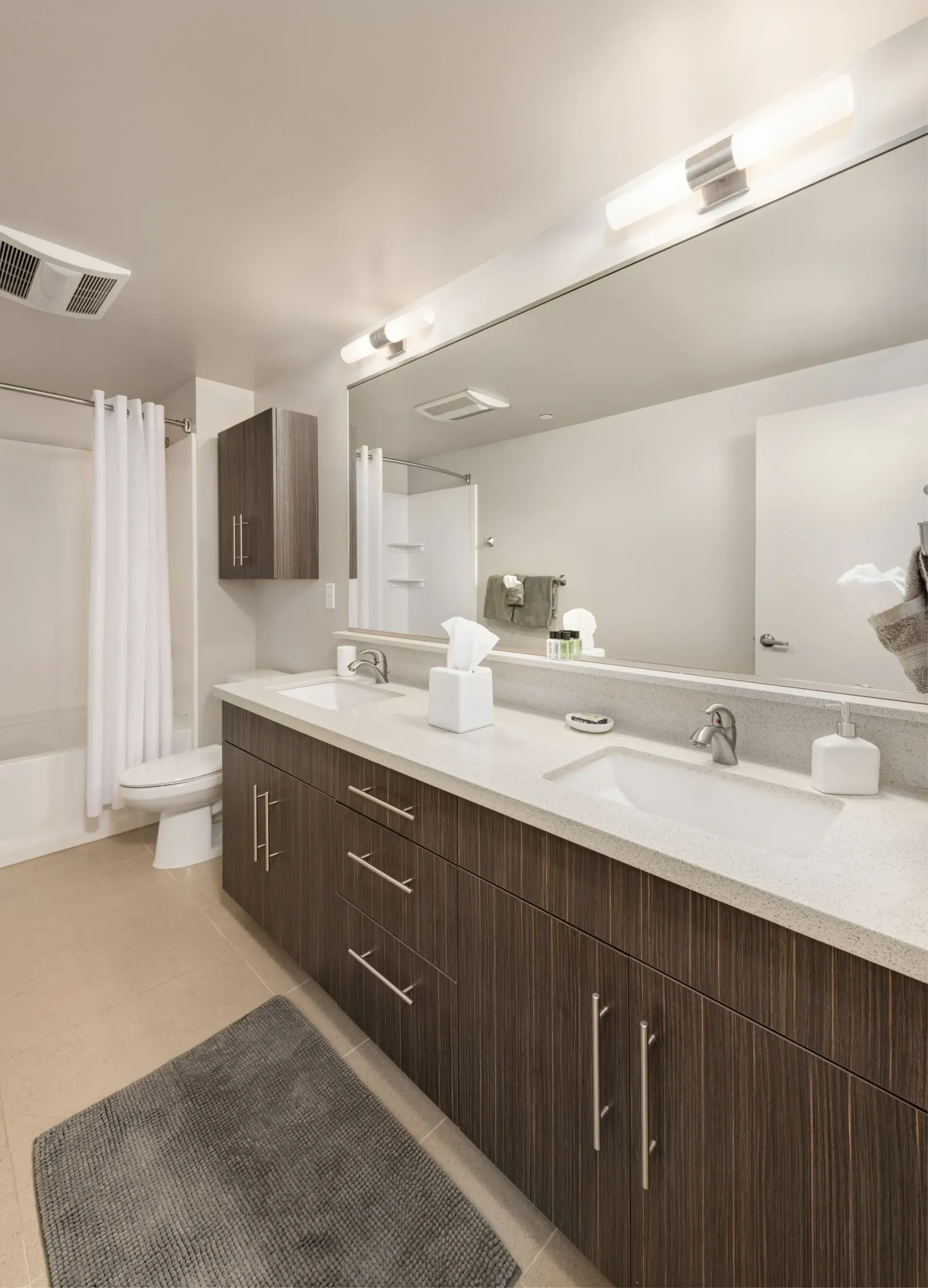 The spacious apartments at The Century feature high-end finishes, tall ceilings, large kitchens and bathrooms, air conditioning, private patios along with an expansive rooftop deck, huge fitness center and high tech theater.